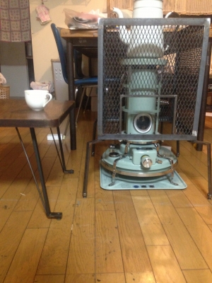 中庭のアラジンストーブ 南阿蘇珈琲